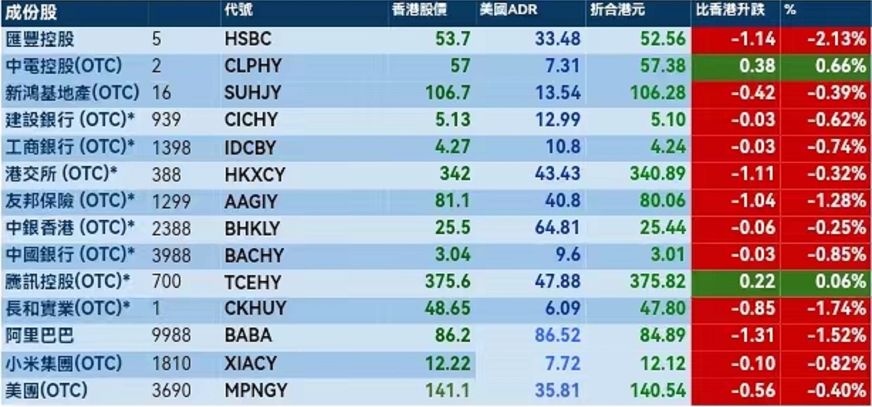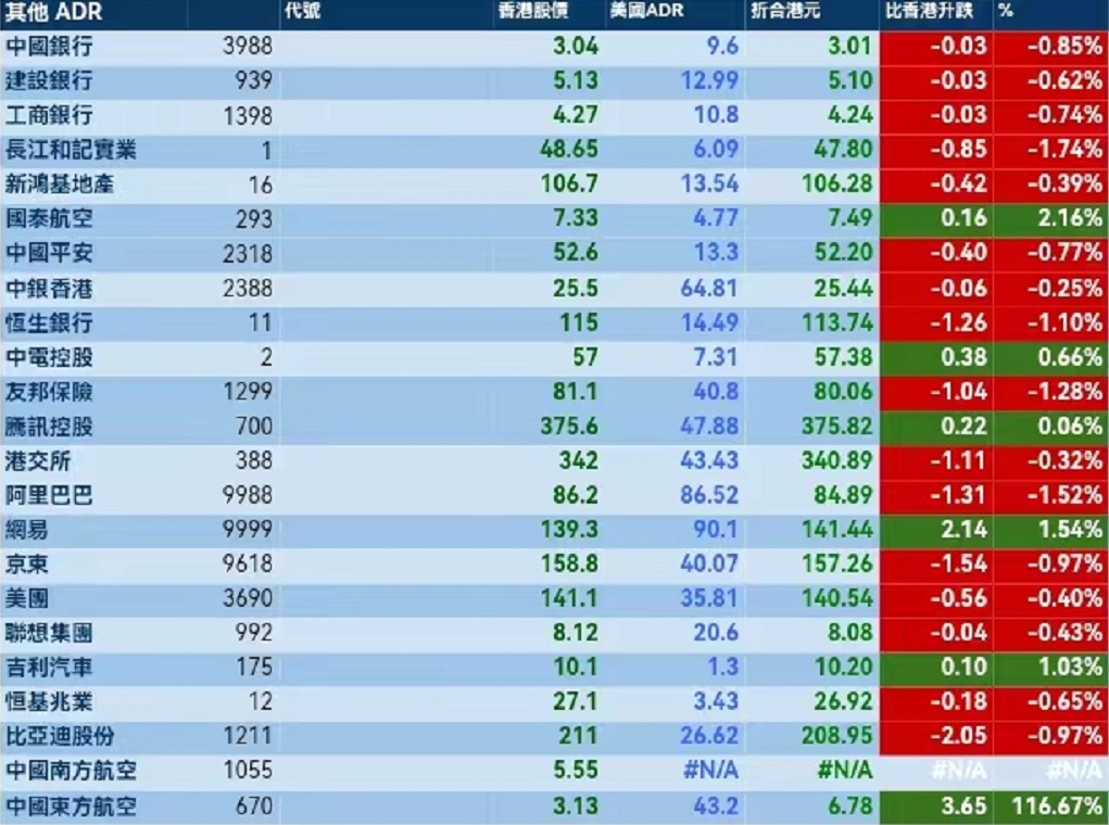智通财经APP获悉,周四美股三大指数集体上涨,港股ADR指数下跌,按比例计算,收报19846点,较香港收市跌202.69点或1.02%。