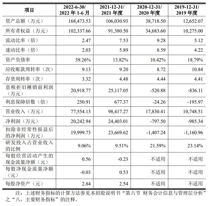 财务方面,于2019年度、2020年度、2021年度以及2022年1-6月,南芯科技实现营业收入分别约为1.07亿元、1.78亿元、9.84亿元、7.76亿元人民币;净利润分别约为-985.34万元、-797.50万元、2.44亿元以及2.00亿元人民币。