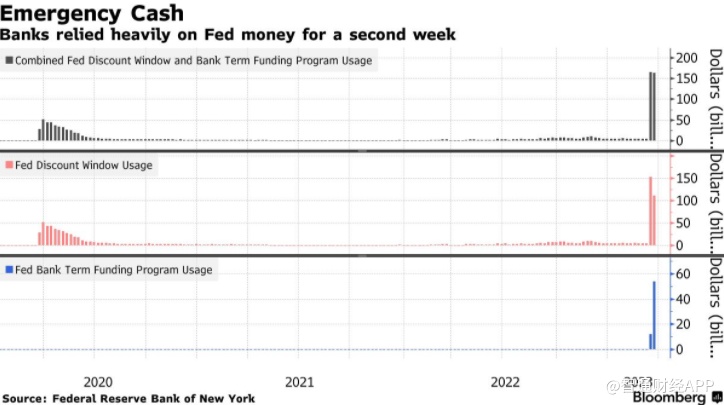 数据显示,金融机构从美联储的传统担保贷款计划(即贴现窗口)借入的资金为1102亿美元,而前一周未偿信贷规模达到创纪录的1529亿美元。这些贷款最长可延期90天,并且该窗口接受多种抵押品。