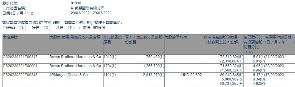 智通财经APP获悉,香港联交所最新资料显示,3月17日,小摩增持新秀丽(01910)281.307万股,每股作价23.6921港元,总金额约为6664.75万港元。增持后最新持股数目约为8904.86万股,最新持股比例为6.17%。