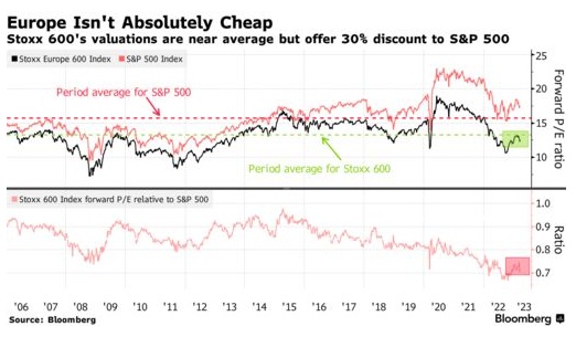 从估值方面看,欧洲股票仍处于有利地位。欧洲斯托克600指数的市盈率约为12.7倍,比标普500指数低近三分之一。但对于大多数策略师来说,这还不足以证明股市上涨是合理的。
