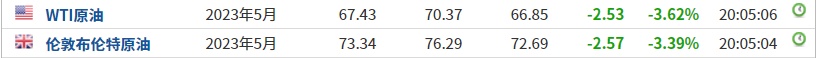 3. 截至发稿,WTI原油跌3.62%,报67.43美元/桶。布伦特原油跌3.39%,报73.34美元/桶。