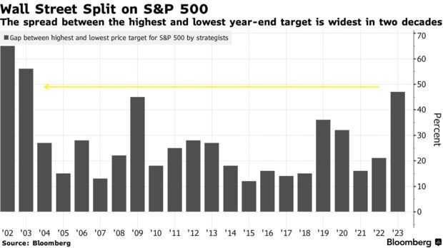 尽管意见分歧是投资领域的一个常见特征,但分歧的程度很少会如此之大。媒体汇编的数据显示,在股市方面,对于标普500指数在今年年底的目标点位预期的差距为47%,是20年来的最大差距。