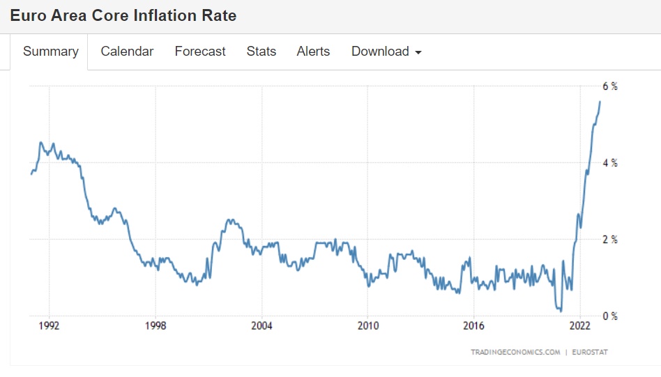 然而,剔除能源和食品等波动因素的欧元区核心通胀指标可能会走另一条路,进一步加速达到欧元时代的新纪录。目前经济学预测欧元区3月整体CPI同比上升7.4%,前值为8.5%,但预计核心CPI同比增长5.7%,或将再创历史新高。