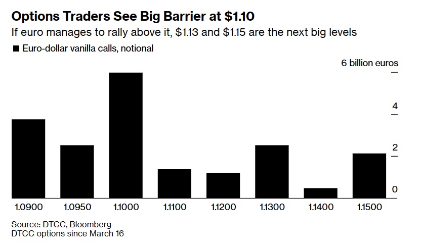 期权交易员在1.10美元处看到巨大障碍——如果欧元能够突破该水平,1.13美元和1.15美元将是下一个重要水平