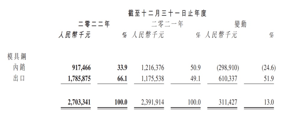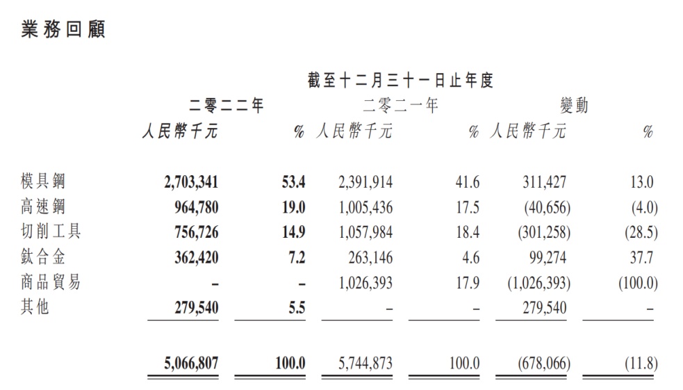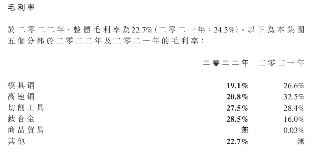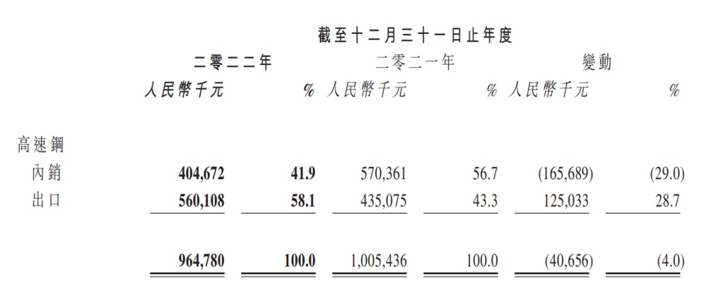 高速钢同样受益于出口。据财报显示,在报告期内对高速钢的需求受其下游切削工具行业需求下降所限制。销量较2021年轻微减少3%。然而,与2021年相比,平均售价则大幅上涨33%。主要由于出口粉末冶金产品的比例增加。因此,高速钢出口收益大幅增加28.7%至5.6亿元。
