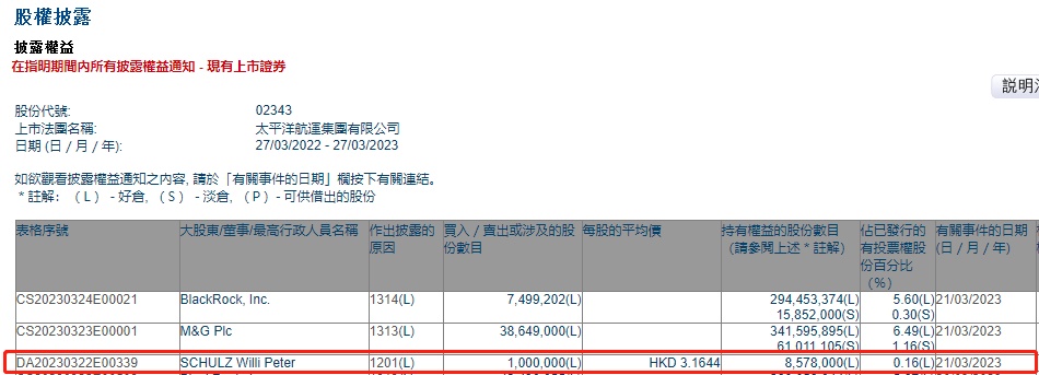 Peter减持太平洋航运(02343)100万股,每股作价3.1644港元,总金额为316.44万港元。减持后最新持股数目为857.8万股,最新持股比例为0.16%。