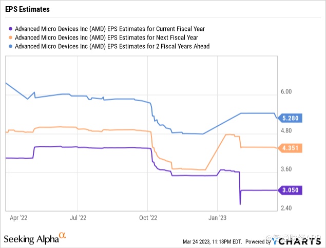 Stone Fox Capital之前的研究显示,AMD的营收只有320亿美元,但每股收益接近6美元。Stone Fox Capital预计,由于终端市场需求的反弹,以及AMD在服务器市场上从英特尔手中夺走更多的市场份额,这家芯片公司达到目标水平的时间比分析师的预测要早得多。