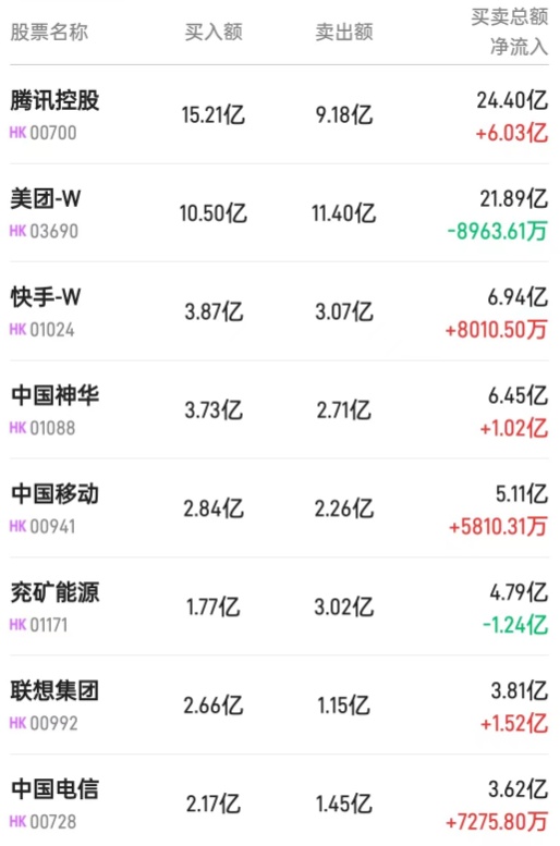 中石化(00386)获净买入2.79亿港元。消息面上,中国石油化工发布年度业绩,期内实现营收3.32万亿元,同比增长21.1%;归属母公司股东的净利润为663亿元,同比下降6.9%。此外,中石化拟向控股股东定增A股股票募资不超120亿元。民生证券表示,随着国内需求的恢复,公司炼化业务盈利有望改善,且在国家大力推动国央企改革深化、推动完善中国特色估值体系的背景下,公司估值有望提升。