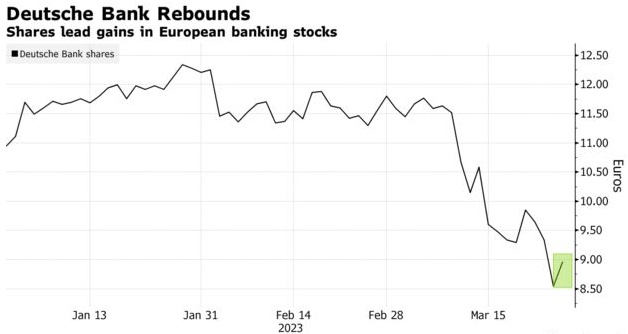 虽然上周五股价下跌没有明确的触发因素,但在瑞士信贷和三家美国地区性银行破产后,对冲基金似乎已将担忧转向了德意志银行。