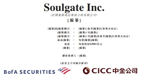 SECURITIES、中金公司为其联席保荐人。2022年6月,Soulgate Inc.正式撤销赴美上市计划,并于2022年6月30日向港交所递交招股书,上市申请材料已于今年初失效。
