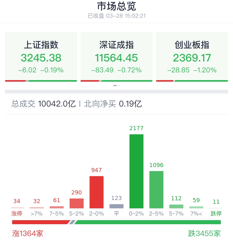 3月28日,多只大涨的ChatGPT概念股发出减持公告,引发板块大幅调整。受此影响,沪指今日窄幅震荡,创业板指低开低走,午后跌幅扩大逾1%。截至收盘,沪指跌0.19%,深成指跌0.72%,创业板指跌1.2%。