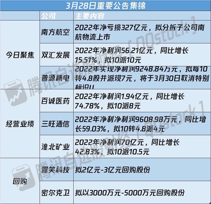 2、南方航空:2022年净亏损327亿元,拟分拆子公司南航物流上市