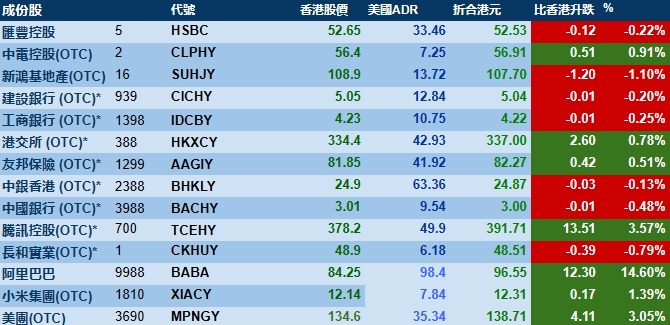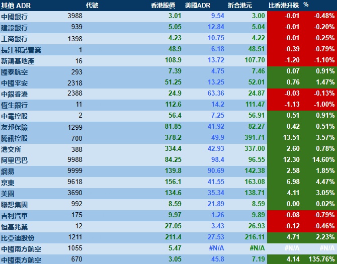 智通财经APP获悉,周二美股三大指数集体收跌,港股ADR指数上涨,按比例计算,收报20118点,较香港收市涨334.01点或1.66%。