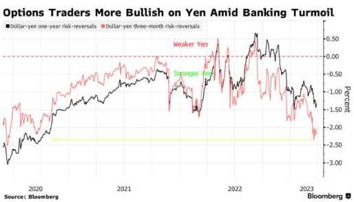 野村国际货币策略师Yusuke Miyairi表示:“美国和欧洲最近的金融不稳定风险增加了经济放缓的可能性。我们相信,作为一种相对的‘避险’货币,日元将更容易受益。”