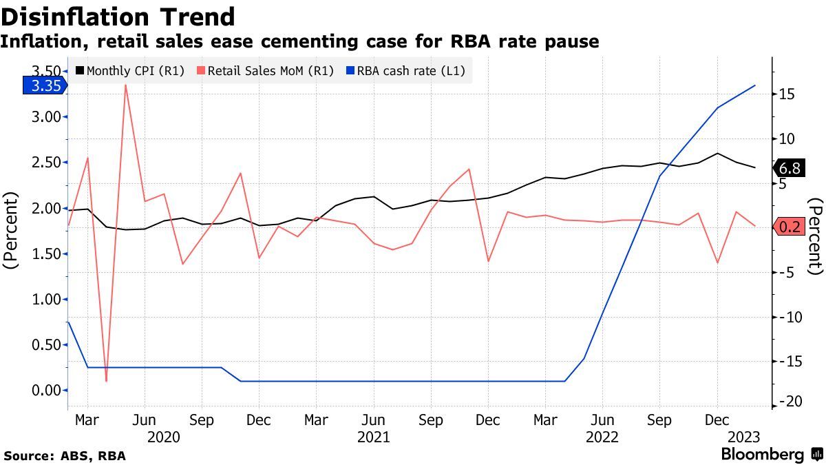 通胀率、零售销售缓解巩固了澳联储暂停加息的预期