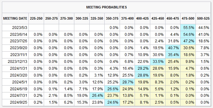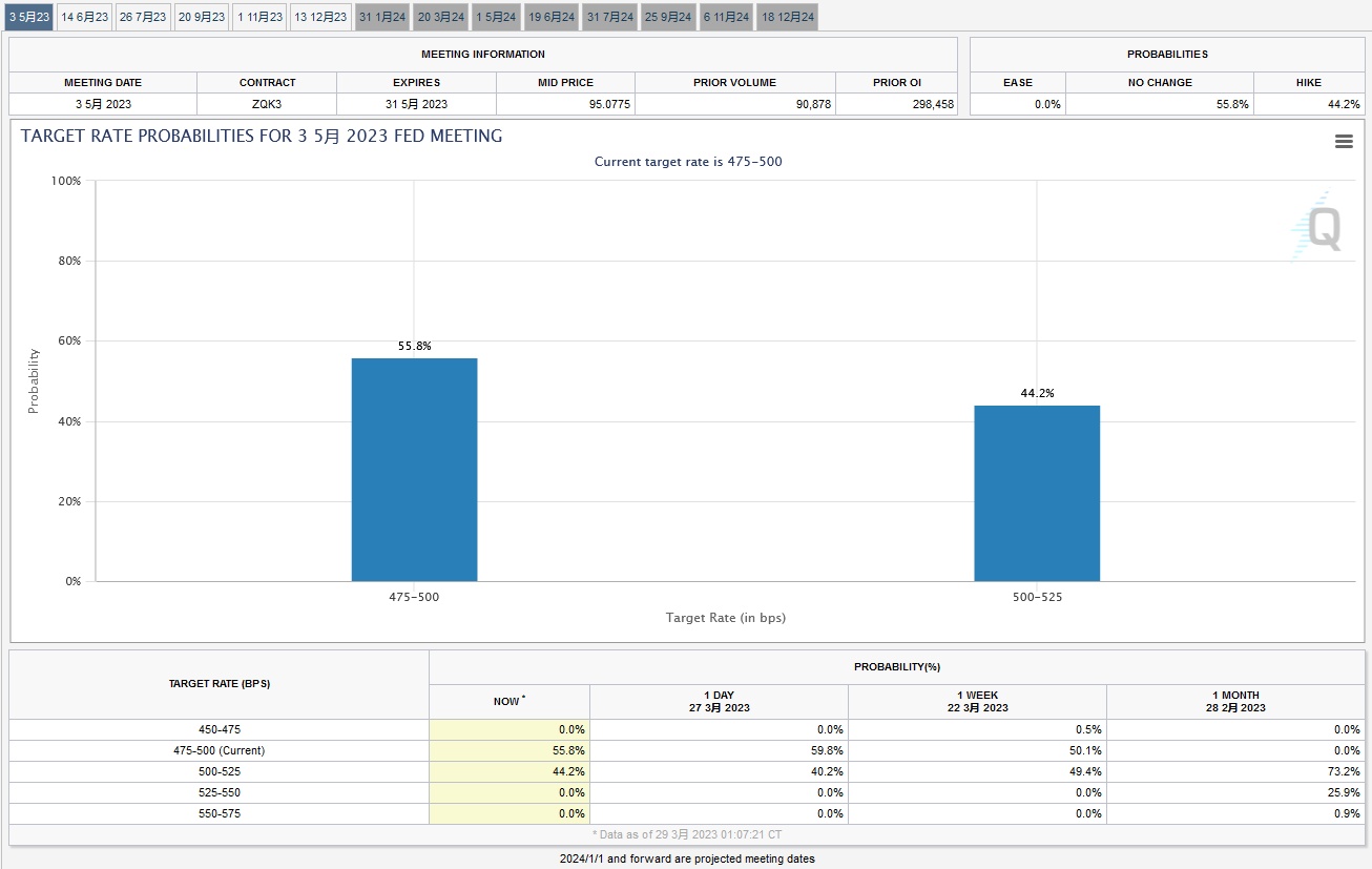 明尼阿波利斯联储主席卡什卡利在上周末强调,银行业压力增加了经济衰退的风险。尽管他并未对美联储5月会议给出任何信息,但他确实强调了美联储正在密切监管此次危机的风险。目前,货币市场的走势表明,美联储在5月加息25个基点的概率不到50%。此外,市场还预计美联储最早将从下半年开始降息,这将给美元带来下行压力。