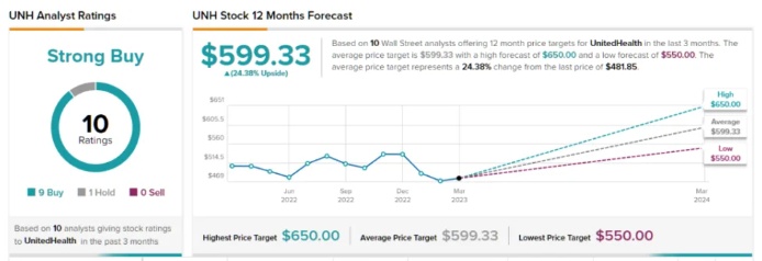 为此,Wright将给予联合健康“增持”评级,并给予目标价587美元。总的来说,根据著名评级机构Tipranks的数据,近期共有10位分析师给出“买入”评级,没有分析师给出“卖出”评级,因此联合健康获得了“强烈买入”共识评级。同时,分析师给予该股的平均目标价为599.33美元。此外,该公司还定期发放股息,目前每年的股息收益率为1.4%。