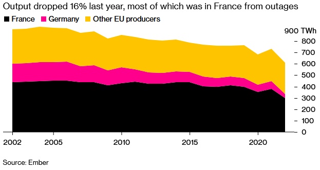 欧洲核电发电量去年下降了16%,其中大部分在法国