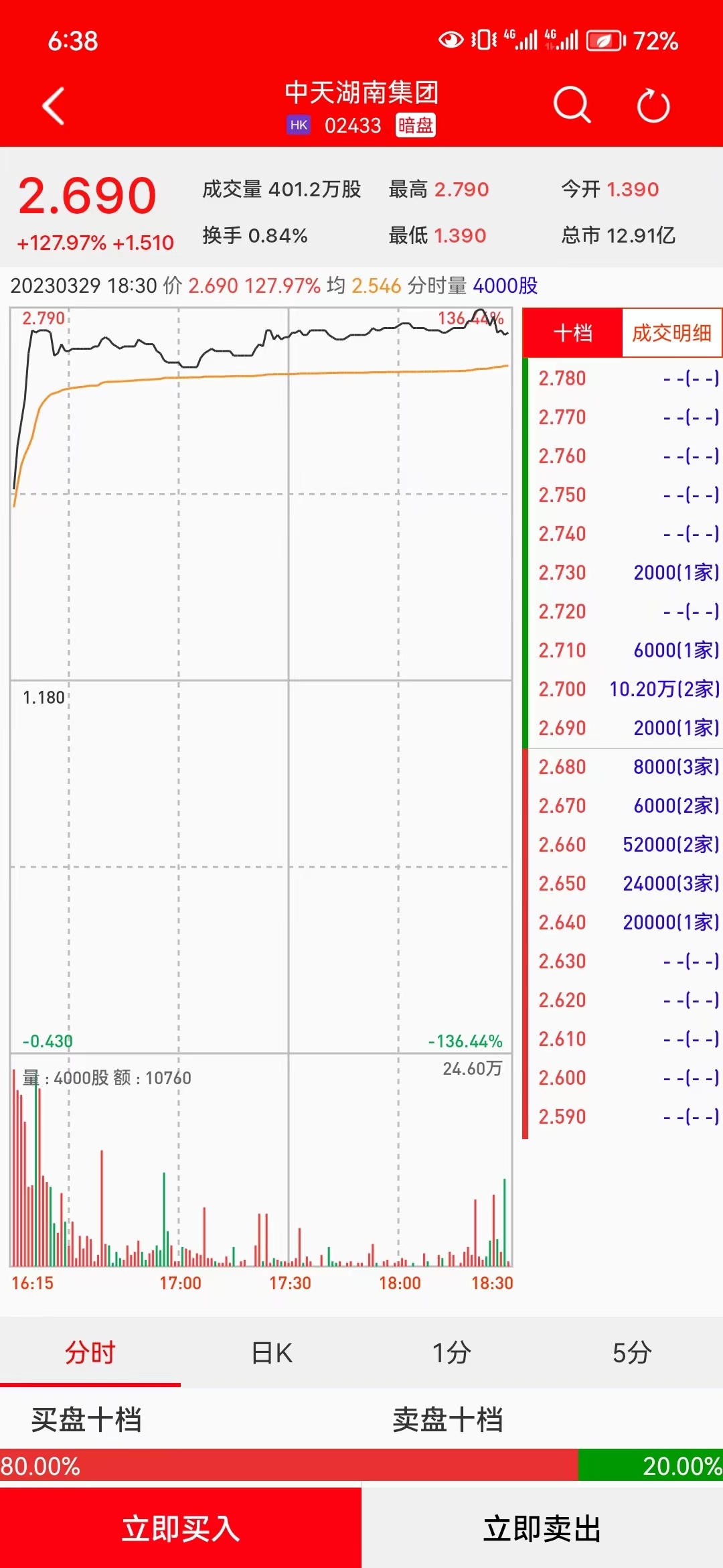 智通财经APP获悉,中天湖南集团(02433)将于3月30日(周四)在香港挂牌。截至收盘,利弗莫尔证券暗盘交易显示报价2.69港元,较招股价1.18港元涨127.97%。每手2000股,不计手续费,每手赚3020港元。