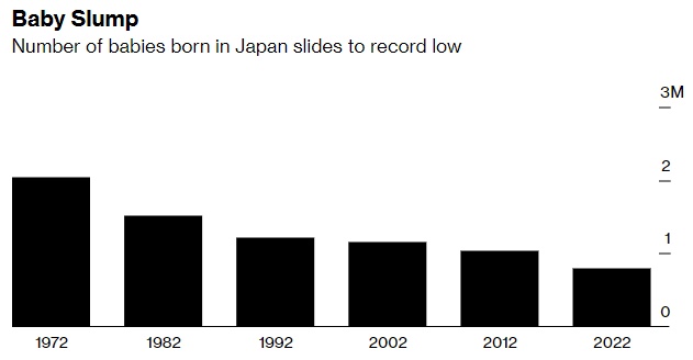 日本去年的出生人数创历史新低,总人口下降了约0.6%。日本首相岸田文雄对去年出生婴儿数量比预期更快的下降感到震惊,他正在准备一揽子政策,他说这是保持社会运转的最后机会。最近几周,强制陪产假、为有孩子的人免除学生债务,以及为第三个孩子支付1000万日元(76445美元)等草案被提出;虽然其中一些措施存在争议,不会被纳入最终计划,但岸田文雄承诺将采取与以往不同的措施。
