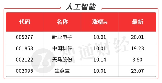 人工智能开盘迎来预期的修复,年内大涨3倍的人气股海天瑞声(688787.SH)又是一根大阳线,盘中一度触及20cm涨停,创历史新高,算力概念中科曙光(603019.SH)带头涨停,尾盘打开,提到的兆龙互联(300913.SZ)延续昨天强势,继续大涨。首板有新亚电子(605277.SH),中国科传(601858.SH )等。部分核心品种出现分歧,数据处理的拓尔思(300229.SZ)新高,国产算力概念拓维信息(002261.SZ)距新高一步之遥,三六零(601360.SH)尾盘均出现冲高回落,分歧明显加大。360今天下午开发布会,会议时长3个小时,产品超预期。