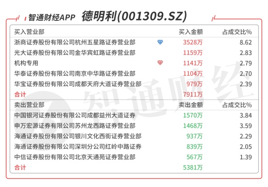 德明利(001309.SZ):多主力现身龙虎榜,机构席位买入1110万元,买一是知名游资的席位买入3528万元,买四是知名游资苏南帮的席位对倒净买入662万元,当日净买入2599万元,该股今日放量反包,有望冲击前期高点。