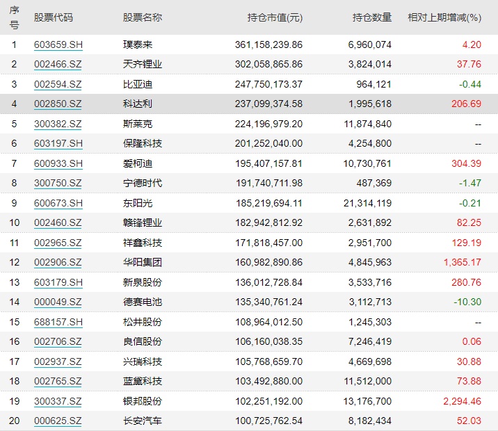 以其管理规模最大的信澳新能源产业股票为例,截至2022年末,该基金规模达到108.36亿元,共持有391只个股。其中,十大隐形重仓股(排名第11-20的重仓股)分别为祥鑫科技、华阳集团、新泉股份、德赛电池、松井股份、良信股份、兴瑞科技、蓝黛科技、银邦股份、长安汽车,公允价值均超过1亿元。