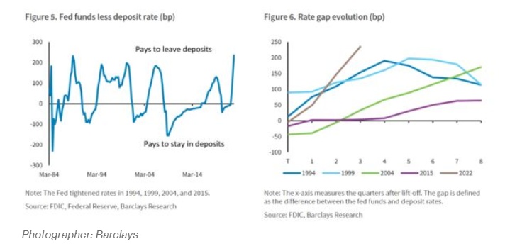 然而,随着时间的推移,以及周期的深入,银行最终将开始传递更高的利率,以争夺存款。