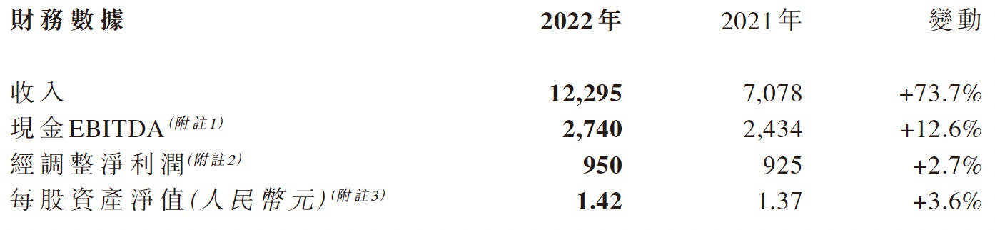 然而即便是在外部诸多不利条件下,仍有不少优质公司逆势取得了突出的成绩。以近日刚披露年报的现代牧业(01117)为例,2022年该公司实现销售收入122.95亿元(人民币,单位下同),同比增长73.7%;经调整净利润9.5亿元,同比增加2.7%。