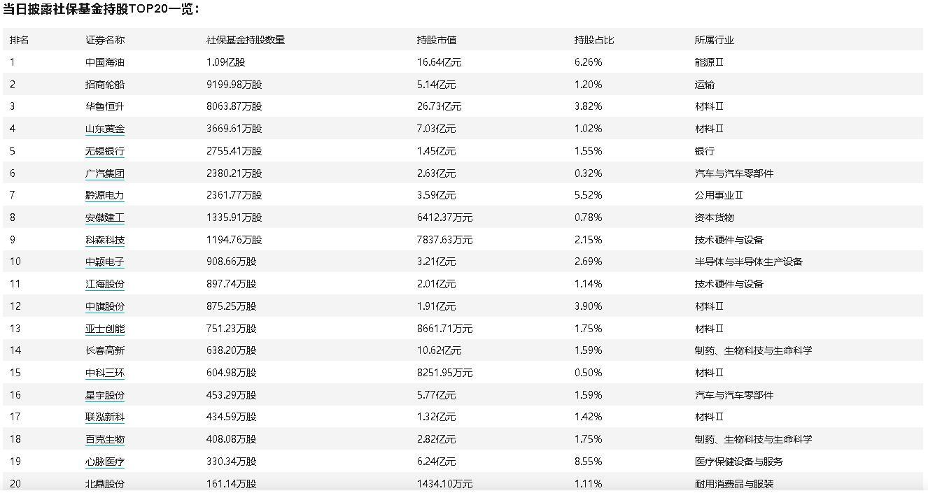 智通财经APP获悉,3月30日,据万得数据显示,社保基金现身23只个股前十大流通股东,合计持股4.87亿股,合计持股市值达102.76亿元。中国海油(600938.SH)、招商轮船(601872.SH)、华鲁恒升(600426.SH)持股数量居前,社保基金分别持有1.09亿股、0.92亿股、0.81亿股。从社保基金持股市值来看,华鲁恒升、中国海油、长春高新(000661.SZ)排名居前,持股市值分别为26.73亿元、16.64亿元、10.62亿元。