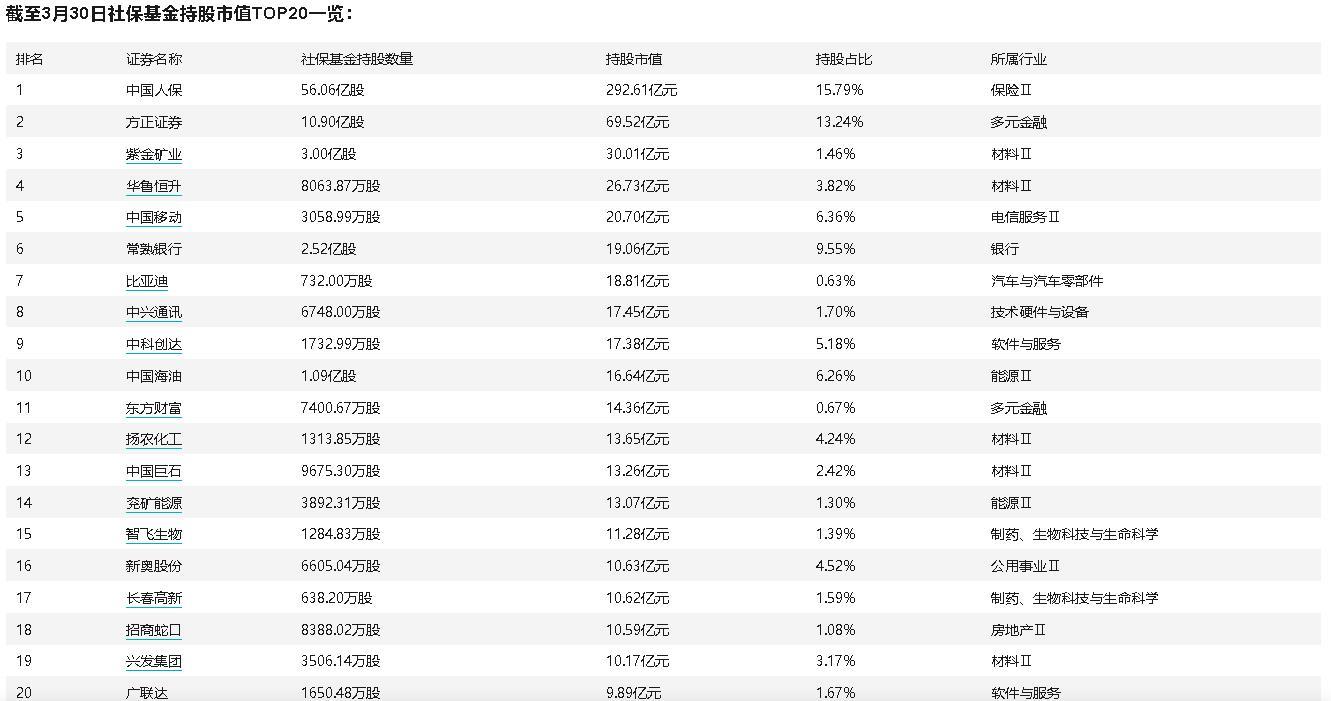 此外,据统计,社保基金连续持仓超2年的29只个股中,从去年四季度末社保基金持股量来看,紫金矿业、常熟银行、中国巨石等持股数量居前,社保基金分别持有3.00亿股、2.52亿股、9675.30万股。社保基金持股比例居前的有常熟银行、和而泰、中科创达等,持股比例分别为9.55%、5.76%、5.18%。