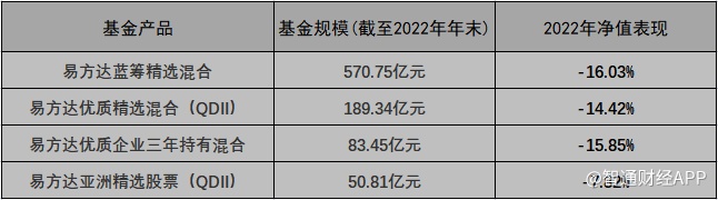业绩表现方面, 截至2022年期末,易方达蓝筹精选份额净值为 2.1686 元,报告期份额净值增长率为-16.03%,同期业绩比较基准收益率为-13.11%。