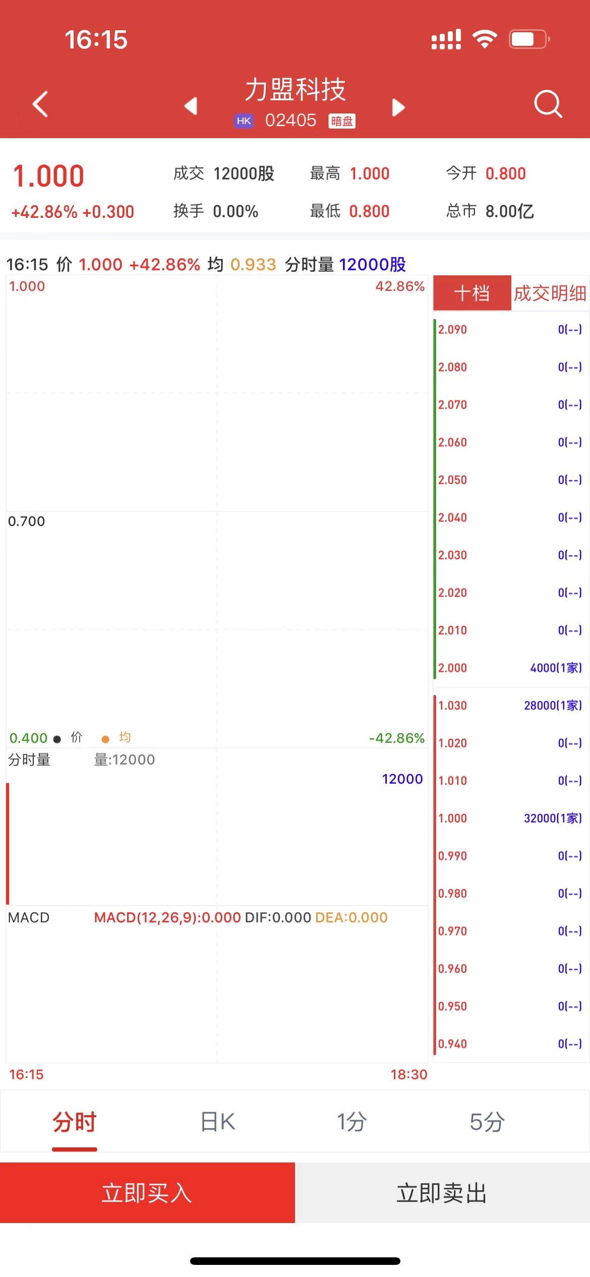 智通财经APP获悉,力盟科技(02405)将于3月31日(周五)在香港挂牌。截至发稿,利弗莫尔证券暗盘交易显示报价1.00港元,较招股价0.7港元涨42.86%。每手4000股,不计手续费,每手赚1200港元。