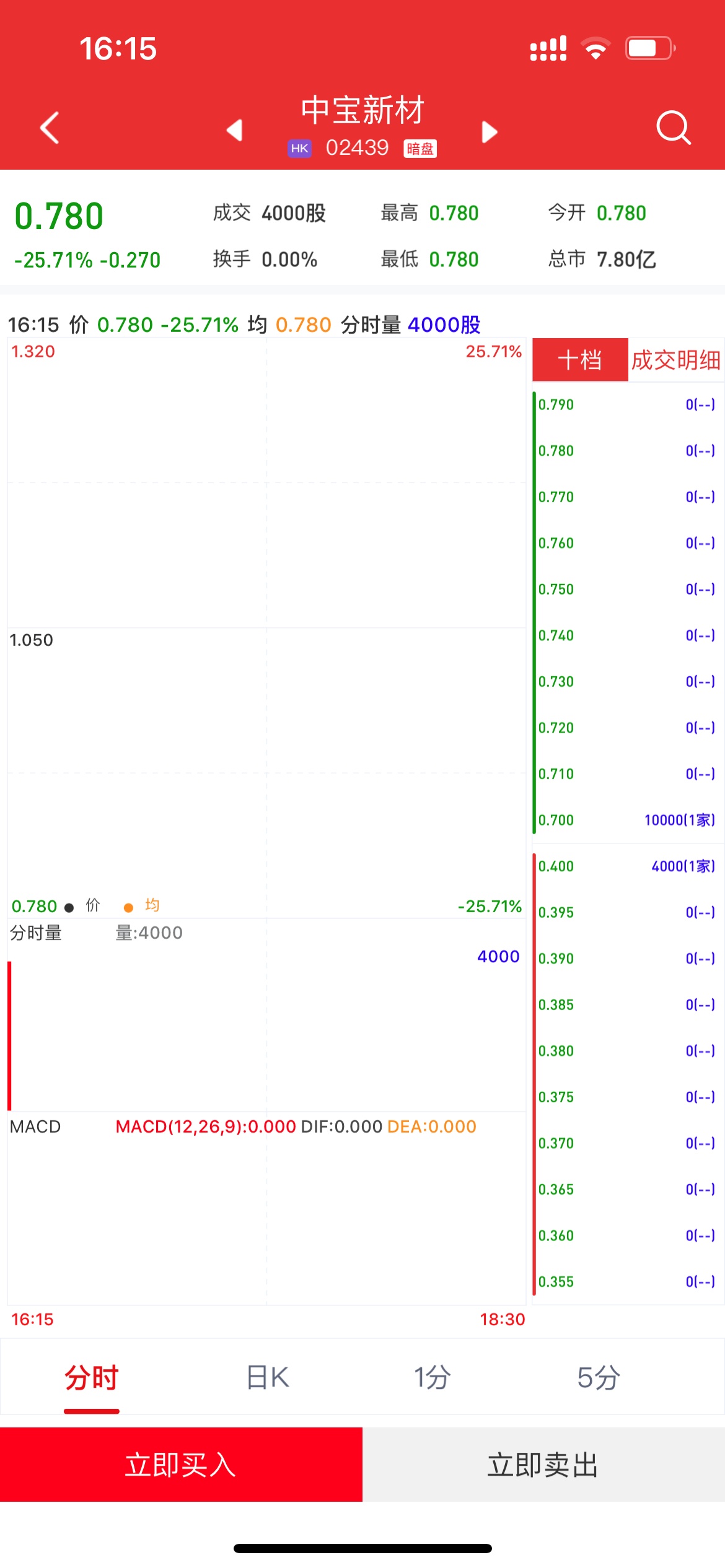 智通财经APP获悉,中宝新材(02439)将于3月31日(周五)在香港挂牌。截至发稿,利弗莫尔证券暗盘交易显示报价0.78港元,较招股价1.05港元跌25.71%。每手2000股,不计手续费,每手亏540港元。