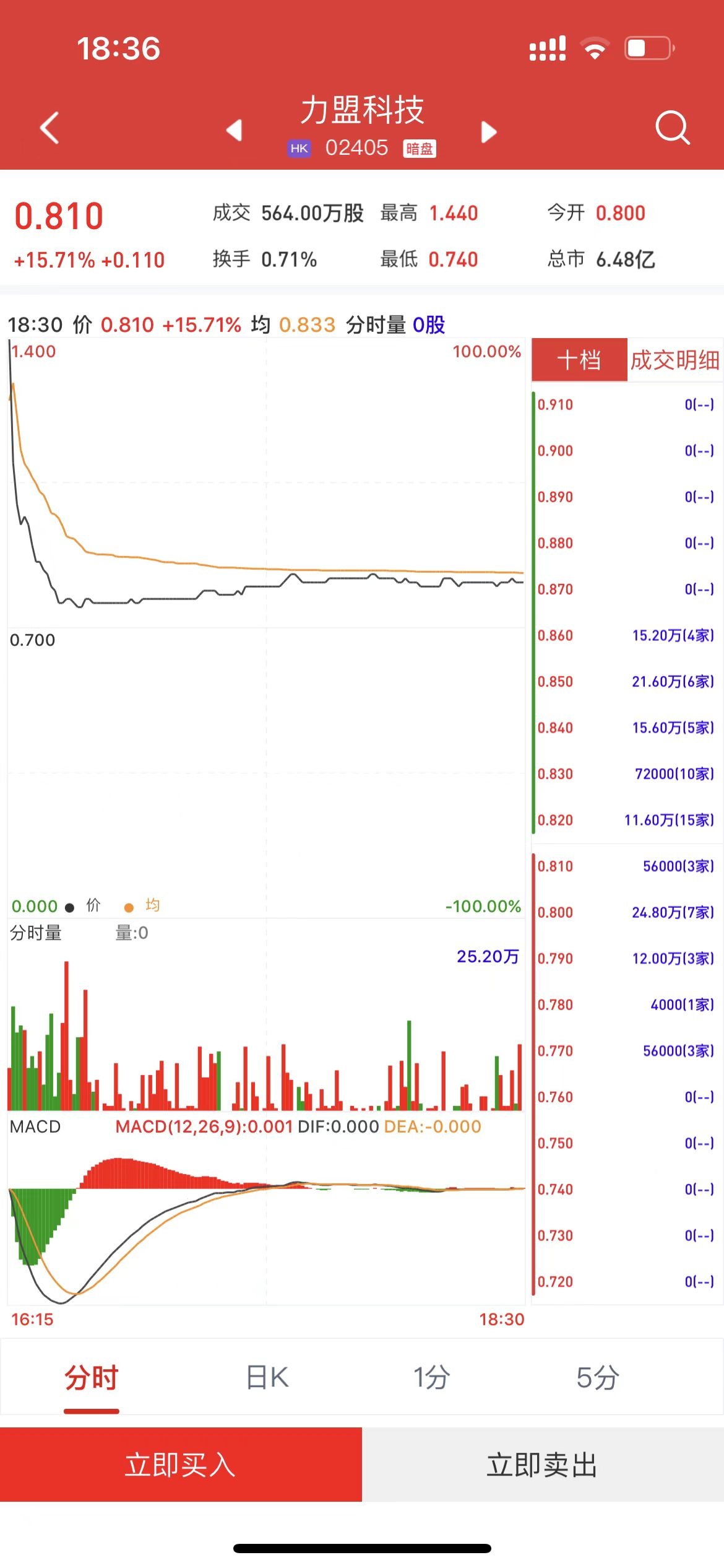 智通财经APP获悉,力盟科技(02405)将于3月31日(周五)在香港挂牌。截至收盘,利弗莫尔证券暗盘交易显示报价0.81港元,较招股价0.7港元涨15.71%。每手4000股,不计手续费,每手赚440港元。