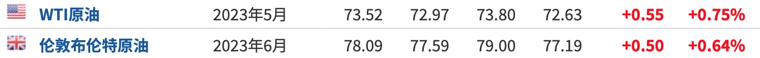 3.截至发稿,WTI原油涨0.75%,报73.52元/桶。布伦特原油涨0.64%,报78.09美元/桶。