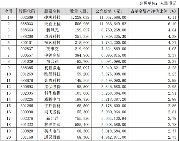 持仓方面,除了此前公布的前十大重仓股外,大摩科技领先混合基金第十一至二十的重仓股分别为:金盘科技(688676.SH)、盛弘股份 (300693.SZ)、科华数据 (002335.SZ)、威腾电气(688226.SH)、宇邦新材 (301266.SZ)、同飞股份 (300990.SZ)、新北洋(002376.SZ)、林洋能源(601222.SH)、英杰电气 (300820.SZ)、通灵股份(301168 .SZ)。