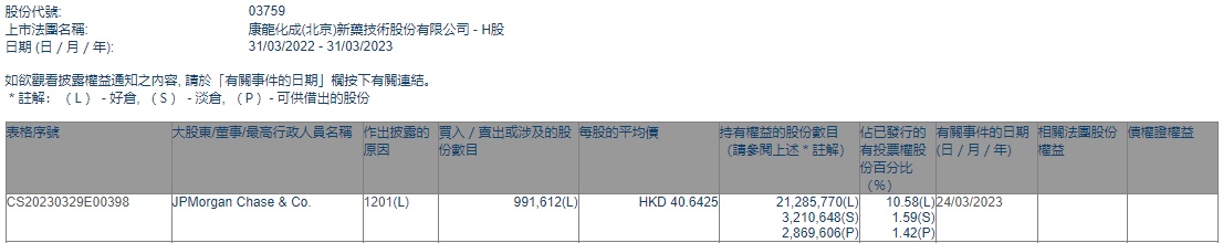 智通财经APP获悉,香港联交所最新资料显示,3月24日,小摩减持康龙化成(03759)99.1612万股,每股作价40.6425港元,总金额约为4030.16万港元。减持后最新持股数目约为2128.58万股,最新持股比例为10.58%。