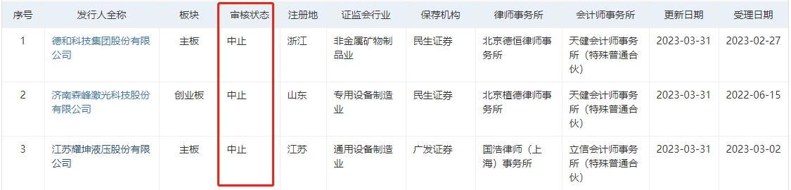 德和科技等3家企业深交所IPO审核状态变更为“中止”