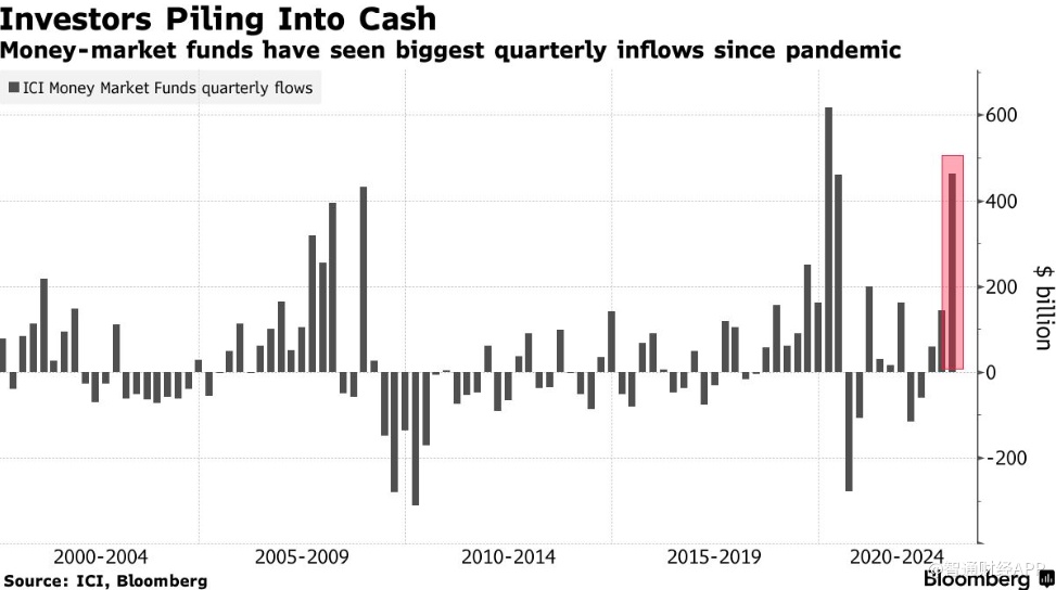 根据美国投资公司学会的数据,美国货币市场基金的资产现在已经达到创纪录的5.2万亿美元,其中超过3000亿美元是在截至3月29日的三周内增加的。