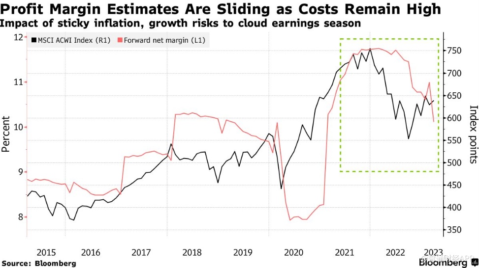 尽管通胀已开始从历史高点降温,但随着企业与仍然高企的劳动力和原材料成本作斗争,全球利润率预期已大幅下降。在美国,分析师预计标普500指数第一季度的盈利将比前三个月出现更大跌幅。全年预期也有所缓和,但市场策略师警告称,企业盈利还有进一步下跌的空间,可能会在未来几个月拖累股市走低。