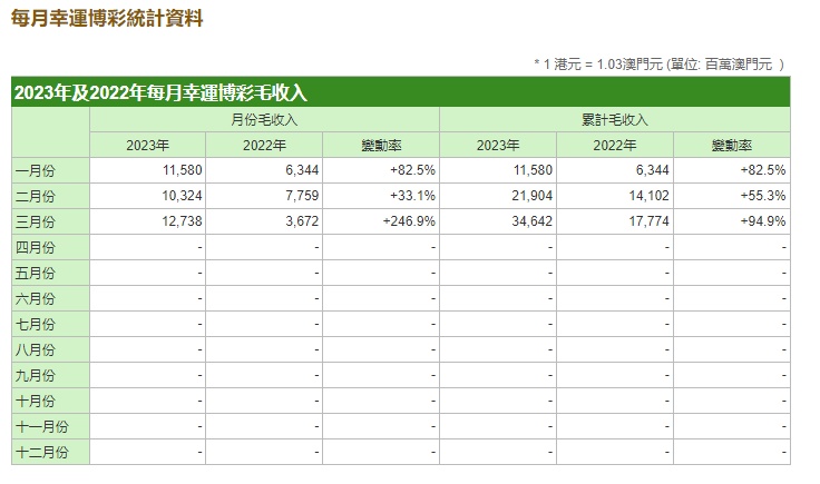 智通财经APP获悉,4月1日,澳门博彩监察协调局发布3月份博彩收入数据。数据显示,3月博彩毛收入127.38亿澳门元,同比增长247%,环比增长23.4%,为2020年1月以来最高;今年第一季度澳门博彩毛收入346.42亿澳门元,同比增长94.9%,环比增长22.7%。