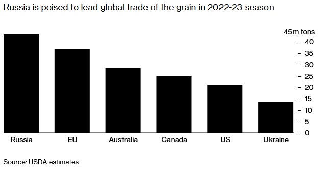 俄罗斯将在2022-23年度引领全球谷物贸易