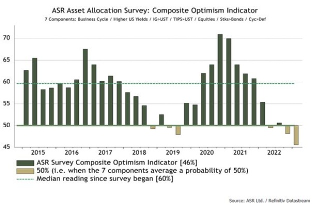 如果政策预期的变化情况体现出市场对经济的负面看法,则表达的观点与其他的定性调查显示的结果是一致的。根据Absolute Strategy Research 刚刚发布的对第二季度资产配置者的调查结果显示,现市场情绪为自2015年调查开始以来最为悲观。