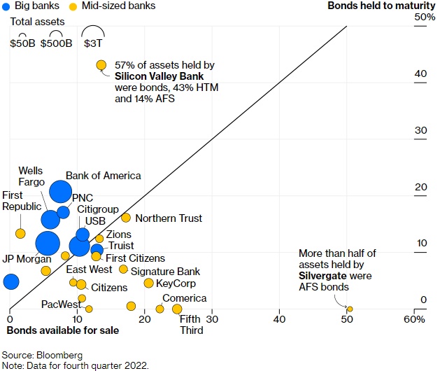 (硅谷银行和Silvergate银行的资产类型百分比均为异常值)