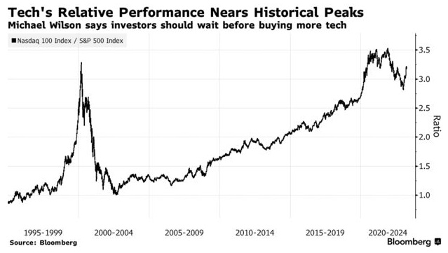 包括 Mislav Matejka 在内其他的摩根大通策略师也表示,科技股“可能不再是进行结构性布局的优质投资标的。” 由于盈利风险、缺乏吸引力的估值和长期背景下非常高的价格相对性,该行业跑赢大盘的强劲表现或将终止,该等策略师表示对该行业保持中立。