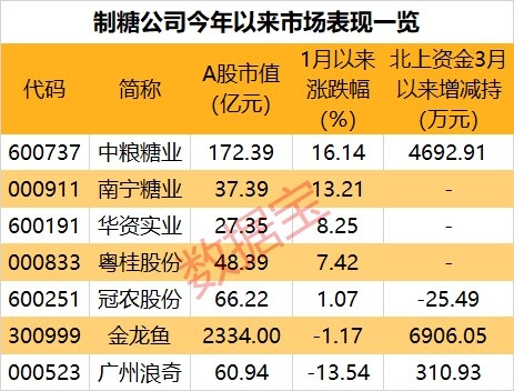 统计发现,春节过后,白糖价格累计涨幅逼近10%,近半年涨幅近20%。而A股市场上,国内制糖的上市公司有中粮糖业、南宁糖业等7家。