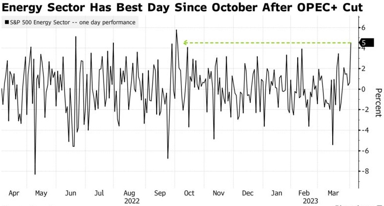 周一,欧佩克+削减石油产量的决定提振了大宗商品价格,提振了能源股;此前,在经历了两年的优秀表现后,能源股在2023年一直萎靡不振。该板块今年以来下跌了近1%,而大盘基准指数上涨了逾7%。