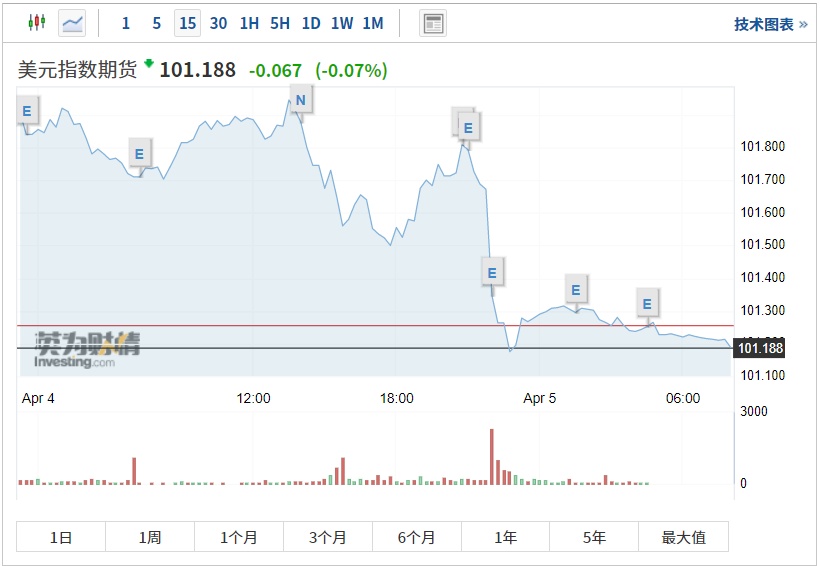 当地时间周二(4月4日),美国劳工部公布JOLTS职位空缺降至21个月低点,美元指数走弱,黄金价格收高并接近纪录高位。截至发稿,美元指数跌0.07%,报101.188;黄金期货涨0.06%,报2039.40美元/盎司。据了解,美国2月份JOLTS职位空缺近两年来首次降至1000万人以下,这表明美联储放缓劳动力市场的努力可能正在产生一些影响。